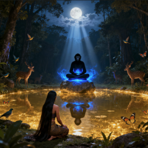 Lutung Kasarung mulai menolong. Ia mengumpulkan buah, membuat pondok dari ranting, bahkan menggali sungai yang jernih. Keajaiban datang: bunga-bunga bermekaran tak seperti biasanya, ikan berenang di kolam buatan Lutung.